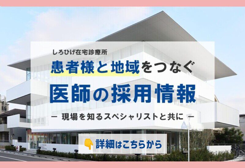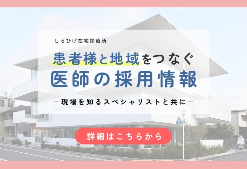 しろひげ在宅診療所では、非常勤やスポット勤務ではなく、最低週3日以上勤務できる常勤医師を募集しています。それは、24時間365日つながる医療体制を本気...