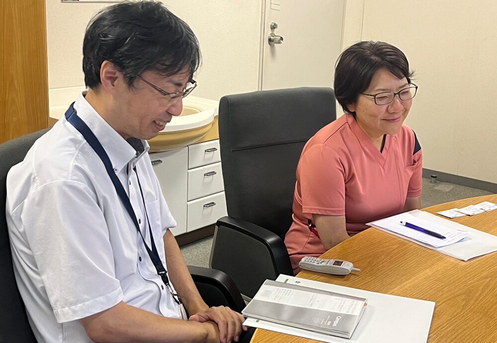 一般的には看護師が担当するケースが多い業務ですが、杏雲堂病院では今年4月から事務職が主導して行う体制を導入しました。これにより、看護師が患者ケアに専念できる時間が増え、全体として業務の効率化や役割分担の明確化につながっています。小規模病院ならではの柔軟な体制変更であり、各職種が互いの業務を理解し合いながら協力する姿勢が表れている取り組みです。